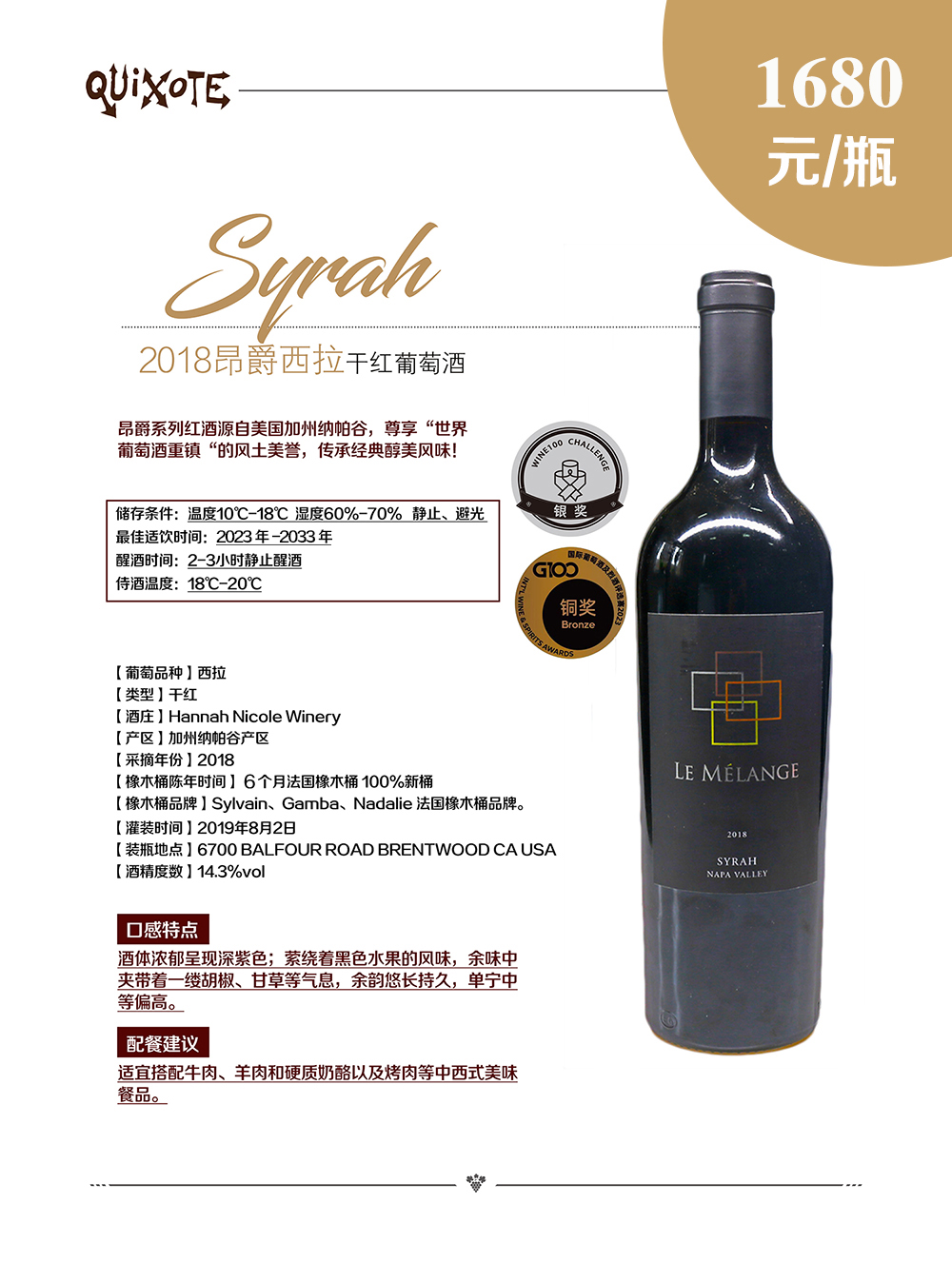 昂爵西拉幹紅2018