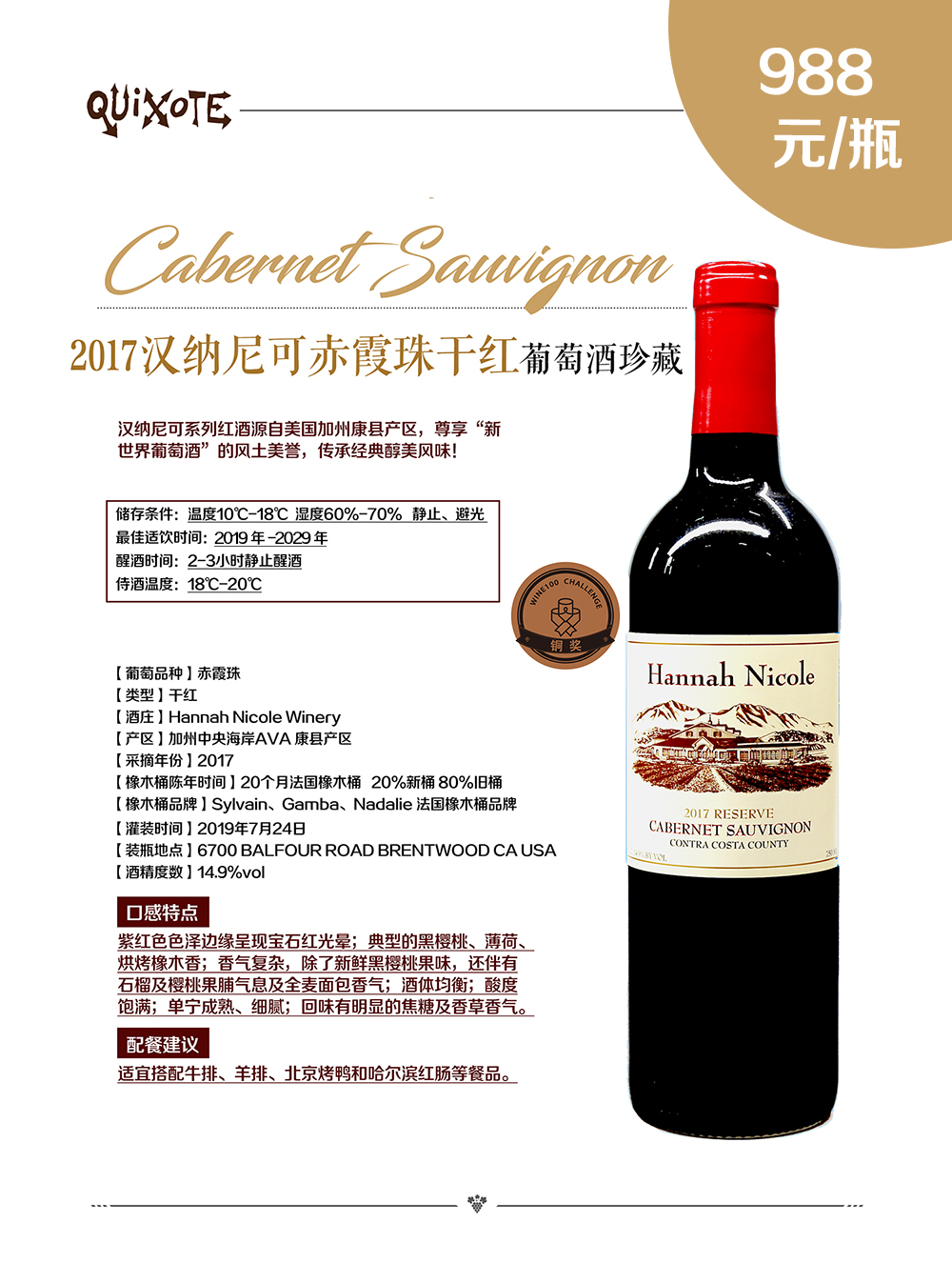 2017漢納尼可赤霞珠珍藏
